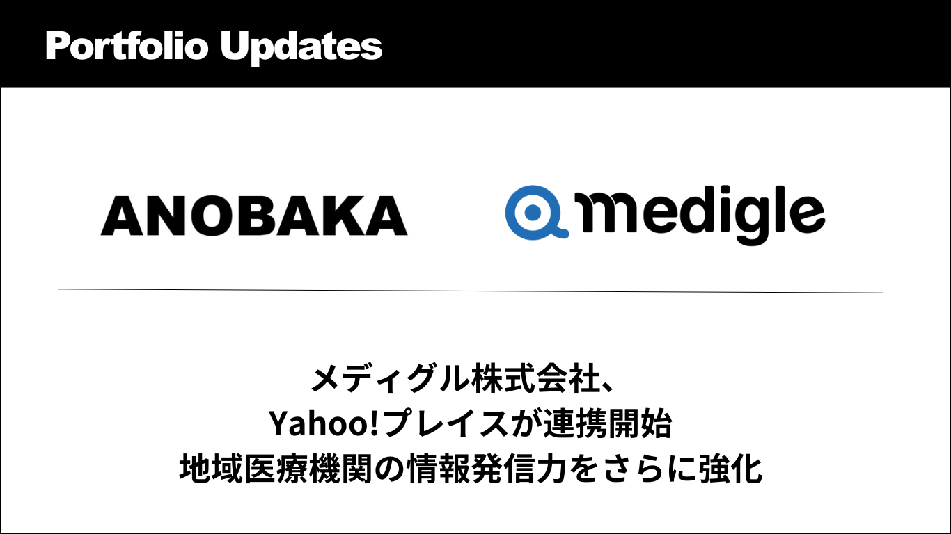 株式会社ANOBAKA(本社:東京都港区、代表取締役:長野泰和、以下、ANOBAKA)の投資先であるメディグル株式会社が、Yahoo!プレイスが連携開始地域医療機関の情報発信力をさらに強化したことをお知らせいたします。