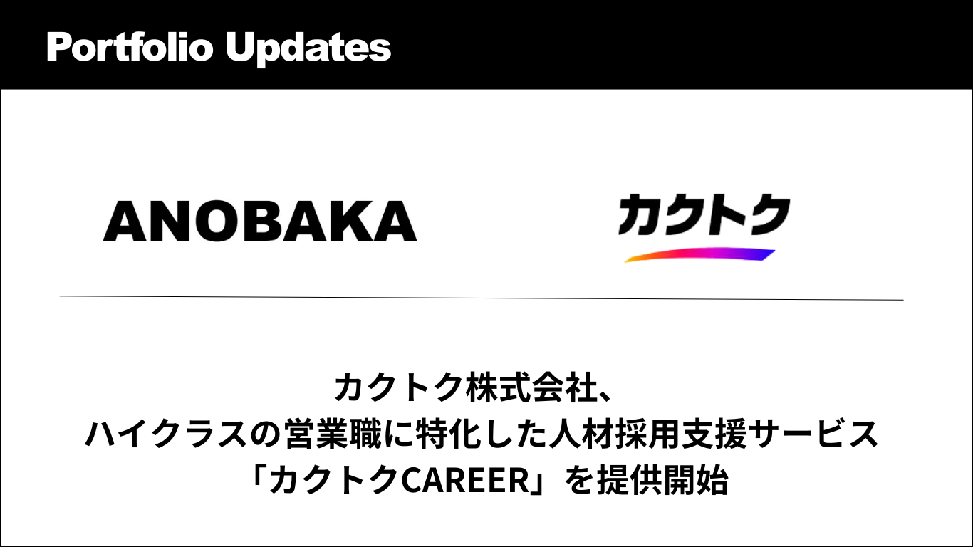 株式会社ANOBAKA(本社:東京都港区、代表取締役:長野泰和、以下、ANOBAKA)の投資先であるカクトク株式会社が、ハイクラスの営業職に特化した人材採用支援サービス「カクトクCAREER」を2025年9月16日に提供開始したことをお知らせいたします。