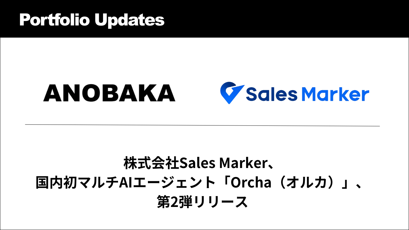株式会社ANOBAKA(本社:東京都港区、代表取締役:長野泰和、以下、ANOBAKA)の投資先である株式会社Sales Markerが、マルチAIエージェント「Orcha(オルカ)」の第二弾機能として、「AI Meeting」を正式にリリースしたことをお知らせいたします。