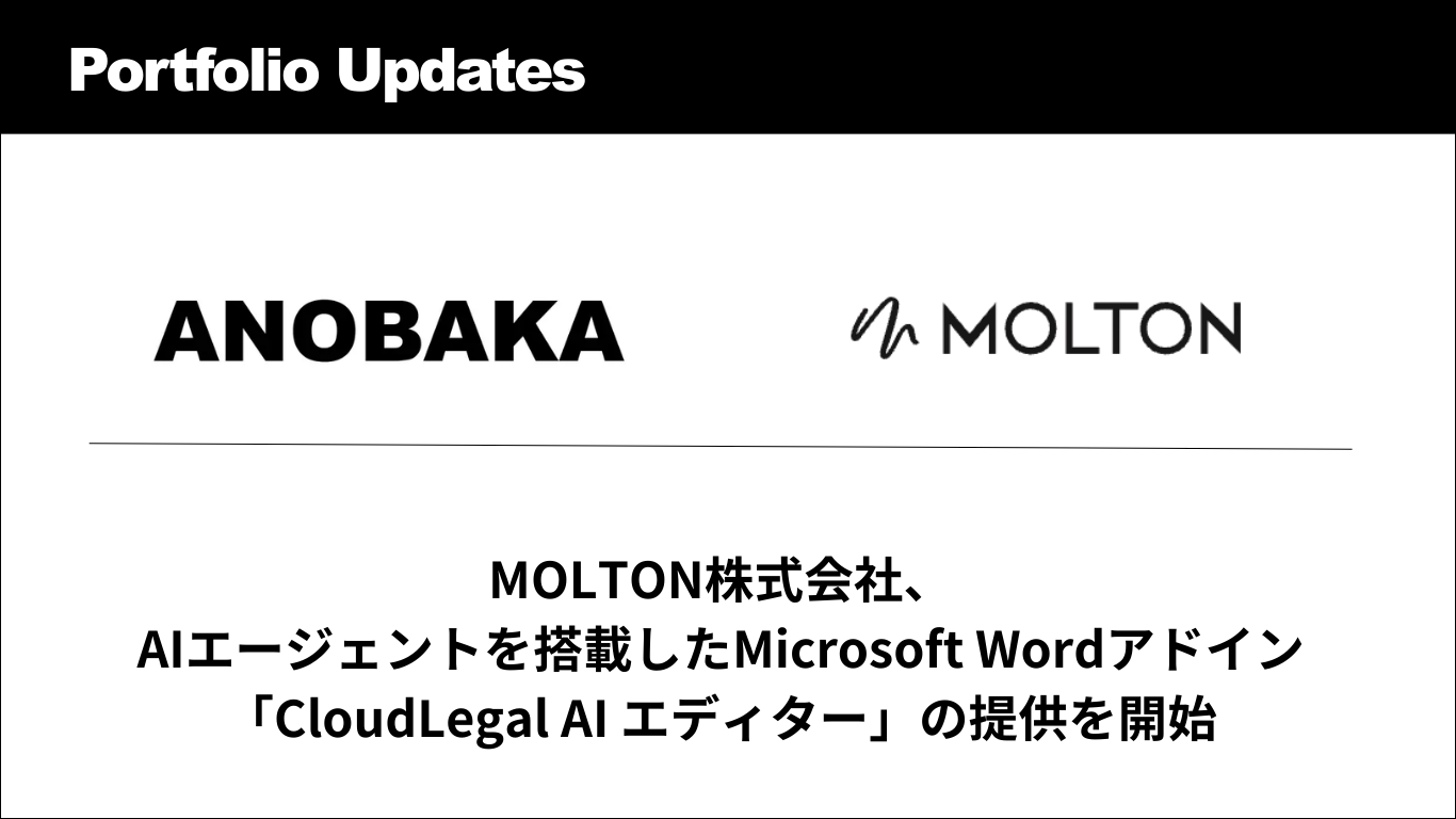 株式会社ANOBAKA(本社:東京都港区、代表取締役:長野泰和、以下、ANOBAKA)投資先であるMOLTON株式会社が、契約・法務BPaaSの企業法務アウトソーシングALSP「クラウドリーガル」において、法務AIエージェントでMicrosoftWordで契約書レビューを完結する「CloudLegal AIエディター」の提供を開始したことをお知らせいたします。