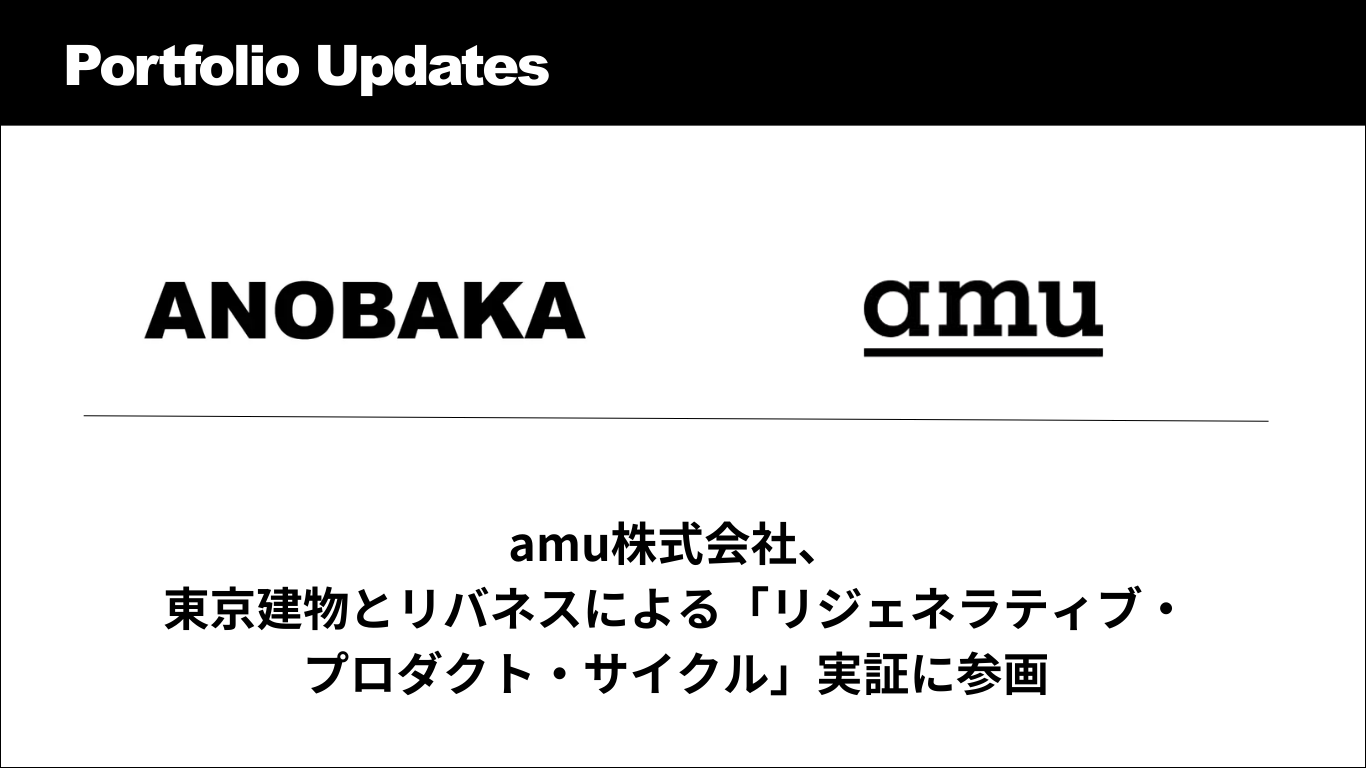 株式会社ANOBAKA(本社:東京都港区、代表取締役:長野泰和、以下、ANOBAKA)の投資先であるamu株式会社は、2026年2月4日〜4月28日、大丸東京店9階明日見世にて、廃漁具由来素材「amuca®(アムカ)」を使用したオリジナル製品を販売したことをお知らせいたします。本取り組みは、東京建物株式会社が推進する「Regenerative City Tokyo」構想の一環として、株式会社リバネスと連携して「リジェネラティブ・プロダクト・サイクル」実証として開始されたものです