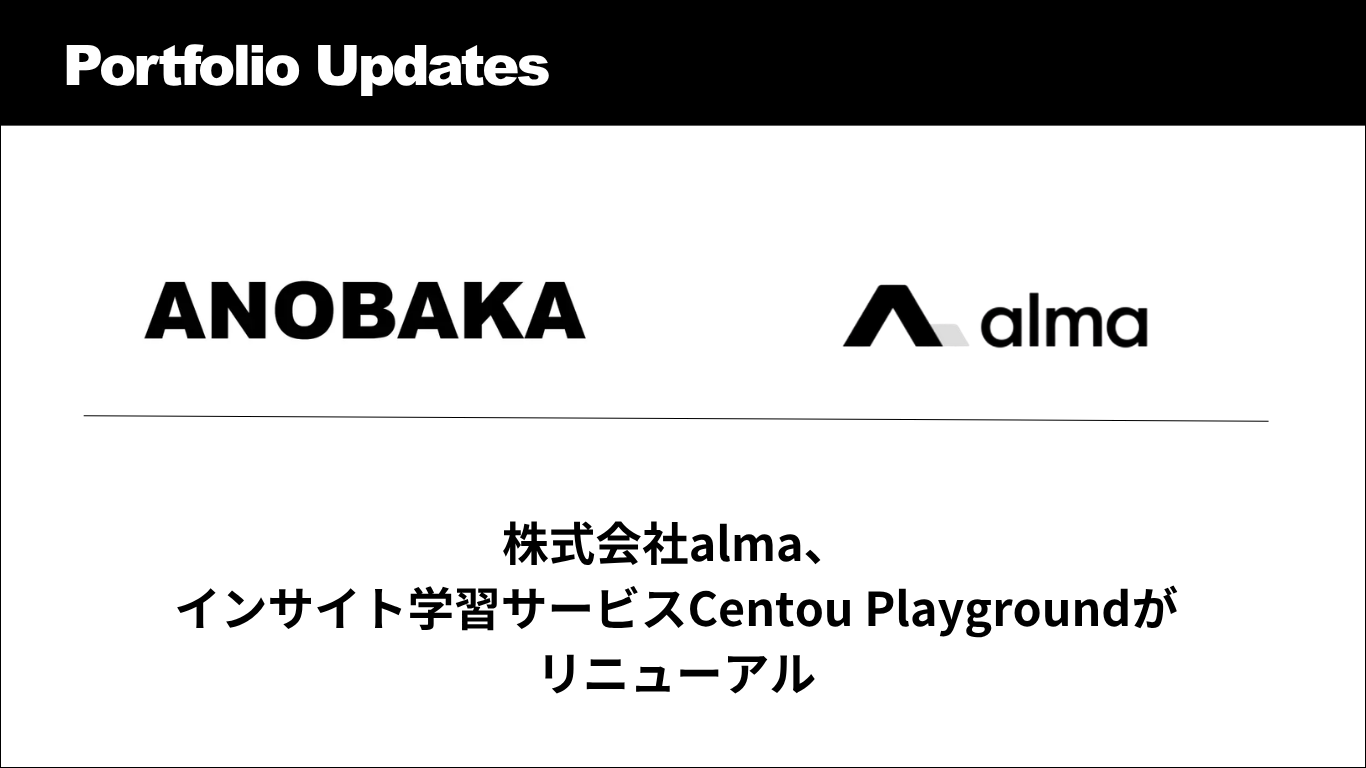 株式会社ANOBAKA(本社:東京都港区、代表取締役:長野泰和、以下、ANOBAKA)の投資先である株式会社almaは、顧客インサイトを実践的に身につけられる学習サービス「Centou Playground」(読み:セントウプレイグラウンド)を、利用者増加に伴いリニューアルしたことをお知らせいたします。