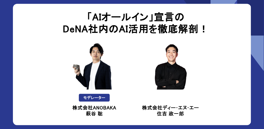 1本目となる今回は、「AIオールイン」を宣言した株式会社ディー・エヌ・エー(DeNA)から住吉政一郎氏にご登壇いただいたセッションの内容についてお届けしていきます!